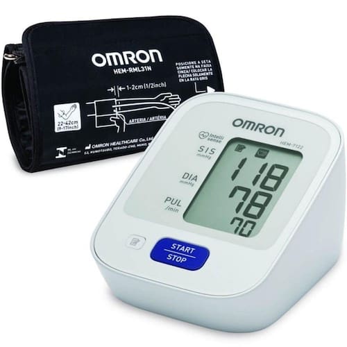 Monitor de pressão automático de braço omron 7122. É fácil de usar, realiza leituras da pressão sistólica, diastólica. Armazena os últimos 30 resultados, detecta arritmia cardíaca e possui indicador de hipertensão.
