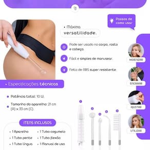 Aparelho Portátil de Alta Frequência para Tratamento Facial e Capilar