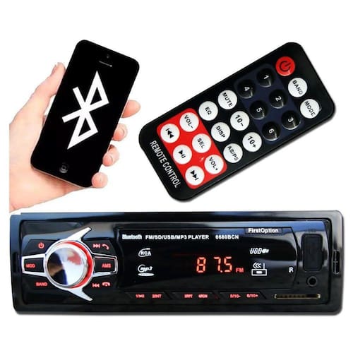 MP3 Player Automotivo Rádio FM USB SD Entrada Auxiliar BLUETOOTH. Tela Led Painel Frontal 4 saídas de autofalante Função de relógio real Sintonização de rádio eletrônica Suporte para USB/ SD/ abertura para cartão MMc Compatível com formato de música MP3 Com Bluetooth