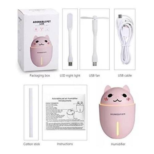 Aparelho umidificador portátil 3 em 1 Umidificador, Ventilador e Night Light luz noturna A aparência Adorável Projeto Animal de Estimação é perfeita para decorar o seu ambiente doméstico, escritório, Spa, quarto, quarto do bebê, etc. SUPER SILENCIOSO: Com o difusor ultrassônico, o ambiente é umidificado silenciosamente.