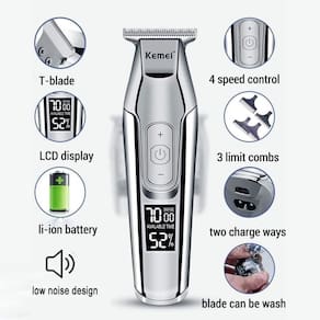 Apartamento Kemei Km-5027 100v/240v Apartamento De Cabelo, Você pode desfrutar de um produto de alta qualidade com ótimos resultados estéticos. Graças aos seus recursos, você poderá exibir seus looks favoritos.O que você precisa saber sobre este produtoCaracterísticas adicionais: Máquina de cortar cabelo.É sem fio e funciona com uma bateria recarregável.O tempo máximo que você pode usar é de 270 minutos.Carregue-o a 100% em cerca de 2 horas.Possui visor digital.Corta até 3 mm.Suas lâminas são feitas de aço carbono.Acompanha 3 pentes.Os acessórios incluem: 1 protetor de lâmina, 1 alça de carregamento, 1 escova de limpeza, 1 manual.Cortes suaves e precisos. Marca: Kemei 5027 Ean: 7894652419685