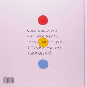 Tudo começa com uma bola amarela no centro de uma página branca e um convite- aperte a bola e vire a página... Como num passe de mágica, surgem duas bolas na página seguinte. A partir daí, novos convites e novas surpresas se descortinam a cada página. Hervé Tullet criou um universo visual simples e convidativo, em que bolas coloridas se multiplicam, mudam de lugar, se iluminam, se apagam, mudam de tamanho... Para que isso aconteça, a criança precisa interagir com o livro, esfregando, soprando, apertando ou batendo palmas.