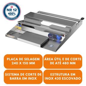 - Sistema de corte do filme através de barra em inox