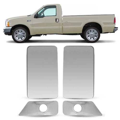 Especificações Técnicas: - Material: ABS de ótima qualidade - Cor: Cromado - Compatibilidade: Ford F250 1998 a 2011 - Conteúdo da Embalagem: 02 apliques para maçanetas; 02 apliques para botões com furo para chave