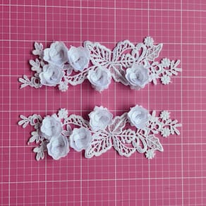 Aplique Guipir APK10 3D - Par Peça delicada e sofisticada para dar acabamento especial em vestidos, véus, roupas infantis, noivas e artesanato. Material: renda guipir de alta qualidade Formato: par direito e esquerdo Cor: branco Tamanho: 23,5 cm Ideal para personalizar peças com charme e elegância. Marca: Não Informado Ean: 7892021951170