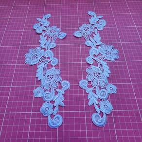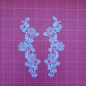 Peça delicada e sofisticada para dar acabamento especial em vestidos, véus, roupas infantis, noivas e artesanato. Material: renda guipir de alta qualidade Formato: par direito e esquerdo Cor: branco Tamanho: 28x11cm Ideal para personalizar peças com charme e elegância. Marca: Não Informado Ean: 7892021951170