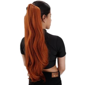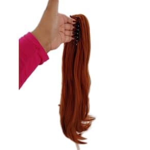 Aplique Rabo De Cavalo Com Piranha Liso 60 Cm Ruivo Fibra
