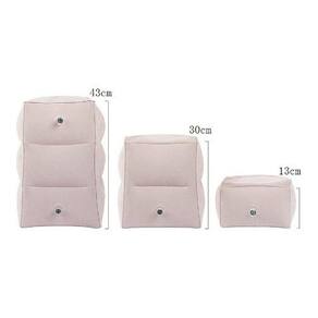 O mais resistente e confortável apoio inflável para viagem. Descrição Produto com 3 alturas, duas válvulas que podem ser enchidas com a boca. A primeira válvula enche dois compartimentos, e a última enche o último para controlar o tamanho -altura 49cm -comprimento 43cm -largura 34cm Pacote inclui: - 1 unidade de almofada