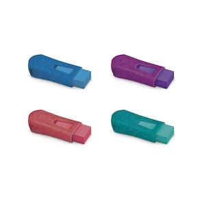 Apontador com depósito + borracha no mesmo produto que traz maior praticidade e conveniência para o uso. Possui tampa flip-top que evita sujeira no estojo além de um visual super atrativo com glitter.