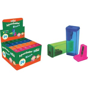 Apontador Com Deposito Bloco 6Cm Apontador Leonora 4534. - Possui depósito; - Formato retangular de 6cm; - Atóxico; - Embalagem: caixa com 24 unidades. - Cores : laranja, azul, rosa, verde, roxo e preto; Marca: LEO & LEO Fabricante: LEO & LEO Marca: Não Informado Ean: 7897256260035