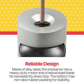 - Seriamente afiado: feito de liga de aço, o apontador de furo único tem um motor resistente e uma lâmina de aço helicoidal para garantir que seus lápis sejam afiados para uma ponta perfeita sempre, cerca de dois segundos após a inserção.
