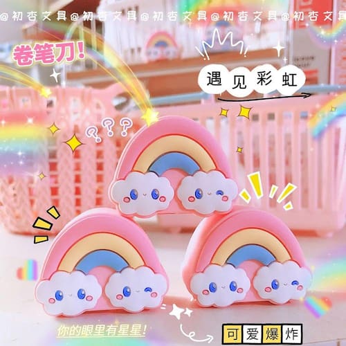 Apontador Escolar Decorado Formato Arco-Íris Baby Rainboow Kwaii 1 - Unidade