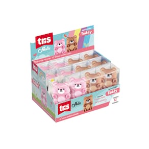 O apontador Teddy tem formato super fofo de ursinho. Fica em pé na mesa e possui corpo emborrachado, deixando seu momento de estudos ainda mais especial.