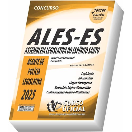 Edição impressa atualizada - elaborada por professores especializados em concursos públicos do curso oficial - são 25 anos de experiência e aprovação dedicados a você, . Cargo: agente de polícia legislativa Tipo: impressa Páginas: 352 Escolaridade: nível fundamental Órgão: ales - assembleia legislativa do espírito santo - edital nº 02/2025 Conteúdo do material: Legislação Informática Língua portuguesa Raciocínio lógico-matemático Conhecimentos gerais e atualidades Você receberá ainda: Testes, provas e questões de concursos anteriores; Atualizações, se houver alguma mudança no edital; Prova do último concurso; Edital do concurso. Marca: Não Informado