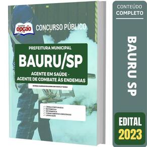 Apostila Bauru SP - Agente de Combate as Endemias apostila para Prefeitura de Bauru - SP 2023 para o cargo de Agente em Saúde - Agente de Combate as Endemias Op-067mr-23-bauru-sp-agt-sau-imp Concurso Prefeitura de Bauru - SP 2023 Você pode imaginar como a sua Vida vai Melhorar depois que você Conquistar a Aprovação neste Concurso Púbico Pois é, mais cedo ou mais tarde, você será Aprovado a e se tornará um Funcionário Público e, isso lhe trará a tão sonhada Estabilidade Profissional e Financeira que tantos almejam. Esta apostila lhe ajudará nesta caminhada, pois, ela é elaborada conforme o Edital. Características do Produto - Formato: Impressa Papel A4 - Marca: Apostilas Opção- Autor: Professores Especializados- Modelo: Livro Brochura - Medidas 21x29cm- Quantidade de Páginas: 398- Edição: Março/2023 A Apostila Concurso Prefeitura de Bauru - SP 2023 - Agente em Saúde - Agente de Combate as Endemias contempla as seguintes matérias: Língua PortuguesaMatemáticaInformáticaConhecimentos EspecíficosLegislação 398 Páginas