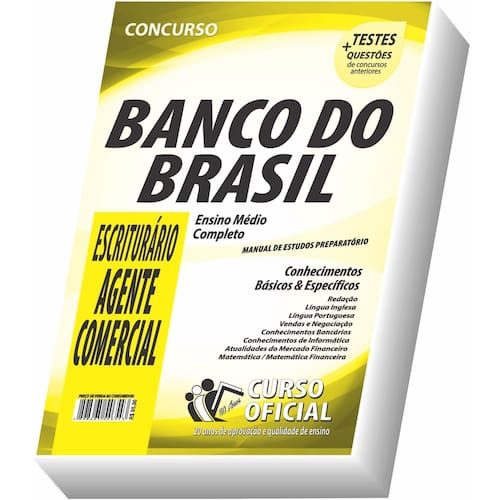 Edição impressa atualizada - elaborada por professores especializados em concursos públicos do curso oficial - são 23 anos de experiência e aprovação dedicados a você, . Cargo: escriturário - agente comercial - carreira administrativa Tipo: impressa Páginas: 450 Escolaridade: ensino médio completo Órgão: banco do brasil s.A. Conteúdo do material: Conhecimentos básicos e específicos Redação Língua inglesa Língua portuguesa Vendas e negociação Conhecimentos bancários Conhecimentos de informática Matemática / matemática financeira Atualidades do mercado financeiro Você receberá ainda: Testes, provas e questões de concursos anteriores; Atualizações, se houver alguma mudança no edital; Prova do último concurso; Edital do concurso. Marca: Não Informado Ean: 7908831302528
