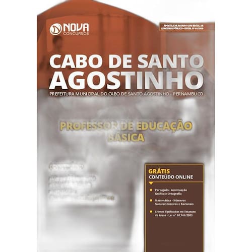 A Apostila para Professor de Educação Básica do concurso Prefeitura de Cabo de Santo Agostinho - PE 2019 foi rigorosamente elaborada conforme o último edital publicado, o que torna o seu conteúdo completo e atualizado.