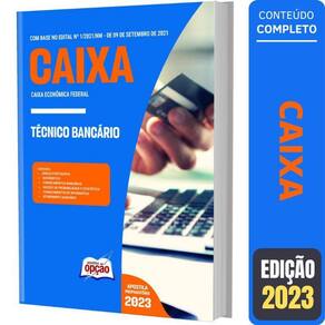 Apostila Caixa - Técnico Bancário Apostila para CAIXA 2023 para o cargo de Técnico Bancário Op-014fv-23-prep-caixa-tec-banc-imp Concurso CAIXA 2023 Você pode imaginar como a sua Vida vai Melhorar depois que você Conquistar a Aprovação neste Concurso Púbico Pois é, mais cedo ou mais tarde, você será Aprovado a e se tornará um Funcionário Público e, isso lhe trará a tão sonhada Estabilidade Profissional e Financeira que tantos almejam. Esta apostila lhe ajudará nesta caminhada, pois, ela é elaborada conforme o Edital. Características do Produto - Formato: Impressa Papel A4 - Marca: Apostilas Opção- Autor: Professores Especializados- Modelo: Livro Brochura - Medidas 21x29cm- Quantidade de Páginas: 344- Edição: Fevereiro/2023 A Apostila Concurso CAIXA 2023 - Técnico Bancário contempla as seguintes matérias: Língua PortuguesaMatemáticaConhecimentos BancáriosNoções de Probabilidade e EstatísticaConhecimentos de InformáticaAtendimento Bancário 344 Páginas