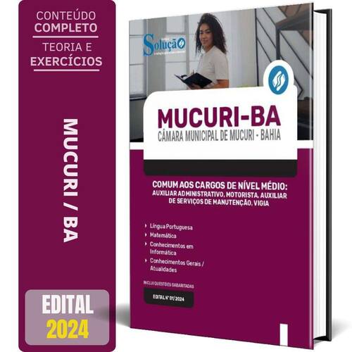 Apostila Câmara de Mucuri BA 2024 - Comum aos Cargos de Nível Médio Apostila para Câmara de Mucuri - BA 2024 para o cargo de Comum aos Cargos de Nível Médio