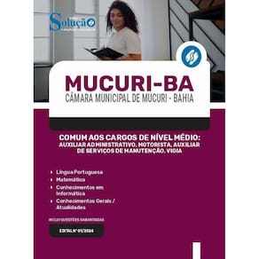 A Apostila Concurso Câmara de Mucuri - BA 2024 - Comum aos Cargos de Nível Médio contempla as seguintes matérias: