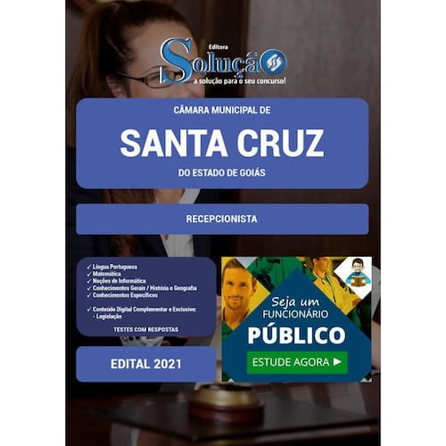 A Apostila Concurso Câmara de Santa Cruz - GO 2021 - Recepcionista contempla as seguintes matérias: