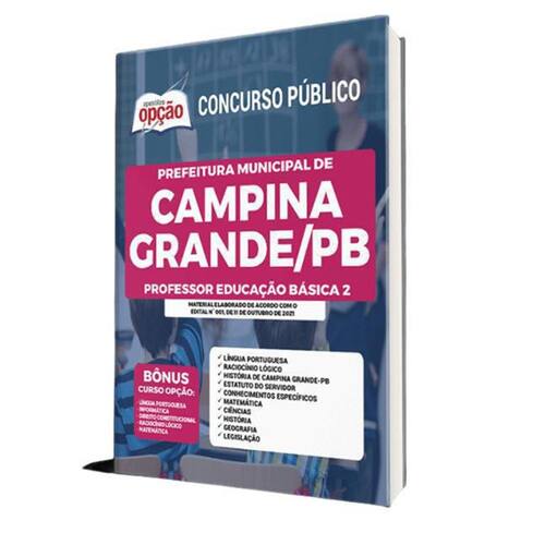 A Apostila Concurso Prefeitura de Campina Grande - PB 2021 - Professor Educação Básica 2 contempla as seguintes matérias: