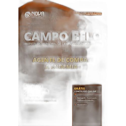 A Apostila para Agente de Combate a Endemias do concurso Prefeitura Campo Belo - MG 2019 foi rigorosamente elaborada conforme o último edital publicado, o que torna o seu conteúdo completo e atualizado. O conteúdo da Apostila e distribuído de forma interativa e simplificada, justamente para facilitar os seus estudos.