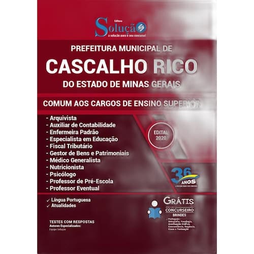 Apostila para Concurso Prefeitura de Cascalho Rico - MG 2020 para o cargo de Comum aos Cargos de Ensino Superior