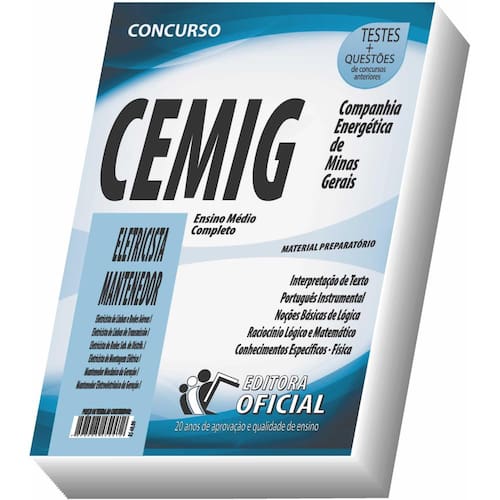 Edição Impressa Atualizada. Elaborada por professores especializados em concursos Públicos do Curso Oficial. São 20 anos de experiência e aprovação dedicados a você, . Cargos: Eletricista de Linhas e Redes Aéreas I - Eletricista de Linhas de Transmissão I - Eletricista de Redes Subterrâneas de Distribuição I - Eletricista de Montagem Elétrica I - Mantenedor Mecânico da Geração I - Mantenedor Eletroeletrônico da Geração I Tipo: IMPRESSA Páginas: 190 Escolaridade: Ensino Médio Completo Órgão: Companhia Energética de Minas Gerais Conteúdo do Material: Interpretação de Texto Português Instrumental Noções Básicas de Lógica Raciocínio Lógico e Matemático Conhecimentos Específicos - Física Você receberá ainda: Testes, provas e questões de concursos anteriores; Atualizações, se houver alguma mudança no edital; Prova do último concurso; Edital do Concurso. Marca: Não Informado