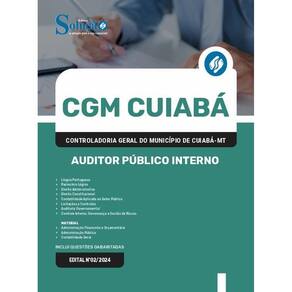 A Apostila Concurso CGM Cuiabá - MT 2024 - Auditor Público Interno contempla as seguintes matérias: Língua Portuguesa Raciocínio Lógico Direito Administrativo Direito Constitucional; Contabilidade Aplicada ao Setor Público Licitações e Contratos Auditoria Governamental Controle Interno, Governança e Gestão de Riscos Material Complementar: Administração Financeira e Orçamentária Administração Pública Contabilidade Geral