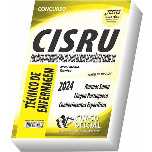Edição impressa atualizada - elaborada por professores especializados em concursos públicos do curso oficial - são 23 anos de experiência e aprovação dedicados a você, . Cargo: técnico de enfermagem Tipo: impressa Páginas: 226 Escolaridade: nível médio/técnico Órgão: consórcio intermunicipal de saúde da rede de urgência centro sul - cisru - edital 10/2024 Conteúdo do material: Normas samu Língua portuguesa Conhecimentos específicos Você receberá ainda: Testes, provas e questões de concursos anteriores; Atualizações, se houver alguma mudança no edital; Prova do último concurso; Edital do concurso. Marca: Não Informado