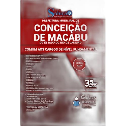 A Apostila para Comum aos Cargos de Nível Fundamental do concurso Prefeitura de Conceição de Macabu - RJ 2020 foi rigorosamente elaborada conforme o edital, o que torna o seu conteúdo completo e atualizado. Marca: Editora Solucao