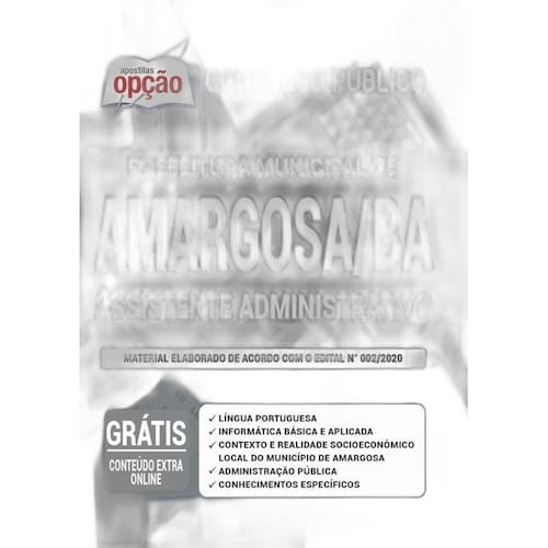 A Apostila Concurso Prefeitura de Amargosa - BA 2020 - Assistente Administrativo contempla as seguintes matérias: