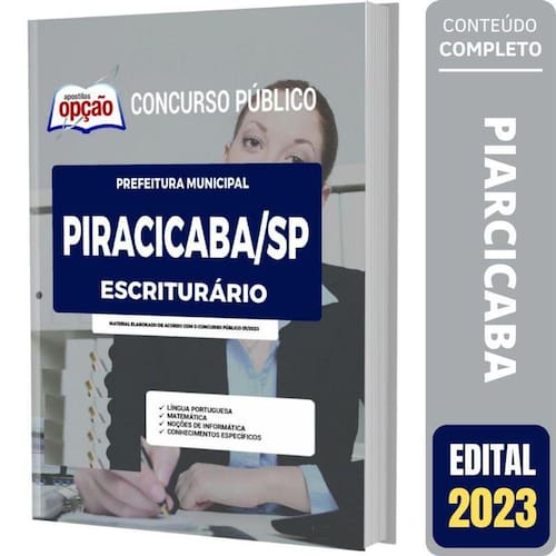 Apostila Concurso de Piracicaba SP - Escriturário Apostila para Prefeitura de Piracicaba - SP 2023 para o cargo de Escriturário