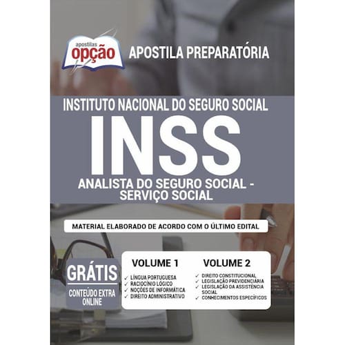 Apostila para Concurso INSS 2020 para o cargo de Analista do Seguro Social - Serviço Social Características do Produto - Formato: Impressa Papel A4 - Marca: Apostilas Opção- Autor: Professores Especializados- Modelo: Livro Brochura - Medidas 21x29cm- Quantidade de Páginas: 798- Mês e Ano de Publicação: Julho/2020 A Apostila Concurso INSS 2020 - Analista do Seguro Social - Serviço Social contempla as seguintes matérias: VOLUME 1:Língua PortuguesaRaciocínio LógicoNoções de InformáticaDireito ConstitucionalDireito Administrativo VOLUME 2:Legislação PrevidenciáriaLegislação da Assistência SocialConhecimentos Específicos 798 Páginas - Está incluso com a Apostila: Português, Matemática e Raciocínio Lógico Ortografia, Mínimo Múltiplo Comum e Associações Lógicas Marca: Opcao Concursos