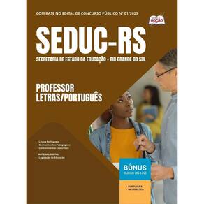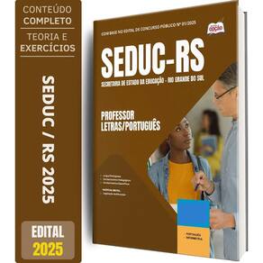 Apostila Concurso SEDUC RS 2025 - Professor - Letras/Português Apostila SEDUC-RS 2025 - Professor - Letras/Português Concurso Secretaria de Estado da Educação do Rio Grande do Sul - SEDUC-RS Apostila SEDUC RS rigorosamente elaborada de Conteúdo com o edital oficial Nº 01/2025; OP-022JL-25-SEDUC-RS-PROF-PORT-IMP Você pode imaginar como a sua Vida vai Melhorar depois que você Conquistar a Aprovação neste Concurso Púbico Pois é, se você se preparar, será Aprovado a e se tornará um a Funcionário a Público a e, isso lhe trará a tão sonhada Estabilidade Profissional e Financeira que tantos almejam. Esta Apostila lhe ajudará nesta caminhada, pois, ela é elaborada conforme o Edital e por Professores especialistas em cada matéria e na banca do concurso. Características do Produto - Formato: Impressa Papel A4 - Marca: Apostilas Opção - Autor: Professores Especializados - Modelo: Livro Brochura - Medidas 21x29cm - Quantidade de Páginas: 142 - Ano de Publicação: Julho / 2025 A Apostila Secretaria de Estado da Educação do Rio Grande do Sul 2025 - Professor - Letras/Português foi organizada para proporcionar um melhor rendimento na sua preparação, abordando cada conteúdo de forma objetiva e direcionada. Estude para o Concurso da Secretaria de Estado da Educação do Rio Grande do Sul 2025 com um material de acordo com o Edital oficial para o cargo de Professor - Letras/Português. Características - Conteúdo de acordo com o edital oficial Nº 01/2025; - Material produzido por equipe especializada em concursos públicos; Matérias da Apostila: Língua Portuguesa Conhecimentos Pedagógicos Conhecimentos Específicos : Legislação da Educação Marca: Não Informado