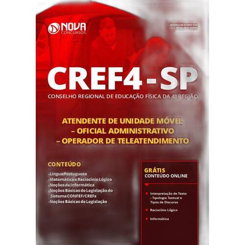 Apostila para concurso cref 4/sp 2019 para o cargo de atendente de unidade móvel, oficial administrativo e operador de teleatendimento