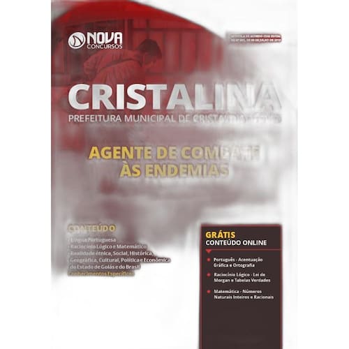 A Apostila para Agente de Combate às Endemias do concurso Prefeitura de Cristalina - GO 2019 foi rigorosamente elaborada conforme o último edital publicado, o que torna o seu conteúdo completo e atualizado.