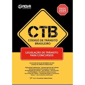 Apostila CTB 2025 - Legislação de Trânsito para Concursos Apostila CTB - Legislação de Trânsito para Concursos -014FV-25-CTB-LEGISLACAO-TRANSITO-IMP Instituição Código de Trânsito Brasileiro Estado Nacional Edição Preparatória Páginas 274 Vantagens ao adquirir este material: Conteúdo essencial e indispensável sobre o tema; Linguagem prática e descomplicada; Dicas, tabelas, fluxogramas, mnemônicos e ilustrações tudo para facilitar a memorização de conceitos; Questões gabaritadas das principais bancas organizadoras do país.