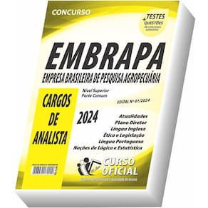 Edição impressa atualizada - elaborada por professores especializados em concursos públicos do curso oficial - são 23 anos de experiência e aprovação dedicados a você, . Cargos: cargos de analista - área: engenharias - gestão da informação - laboratórios e campos experimentais - gestão de pessoas - gestão estratégica - ciências sociais aplicadas - direito e auditoria - ciências biológicas - ciências exatas e da terra - ciênca e tecnologia de alimentos - ciências agrárias e demais áres do cargo de analista Tipo: impressa Páginas: 244 Escolaridade: nível superior Órgão: empresa brasileira de pesquisa agropecuária - embrapa - edital 1/2024 Conteúdo do material: Ética e legislação Plano diretor - atualidades Língua inglesa - língua portuguesa Noções de lógica e estatística parte comum a todos os cargos Você receberá ainda: Testes, provas e questões de concursos anteriores; Atualizações, se houver alguma mudança no edital; Prova do último concurso; Edital do concurso. Marca: Não Informado