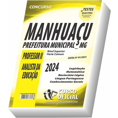 Cargos: professor ii - analista da educação Tipo: impressa Páginas: 252 Escolaridade: nível superior Órgão: prefeitura municipal de manhuaçu - mg - edital nº 01/2024