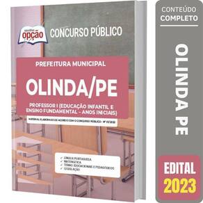 Apostila Olinda PE - Professor I Educação Infantil Apostila para Prefeitura de Olinda - PE 2023 para o cargo de Professor I Educação Infantil e Ensino Fundamental - Anos Iniciais Op-020jn-23-olinda-pe-inf-fund-imp Concurso Prefeitura de Olinda - PE 2023 Você pode imaginar como a sua Vida vai Melhorar depois que você Conquistar a Aprovação neste Concurso Púbico Pois é, mais cedo ou mais tarde, você será Aprovado a e se tornará um Funcionário Público e, isso lhe trará a tão sonhada Estabilidade Profissional e Financeira que tantos almejam. Esta apostila lhe ajudará nesta caminhada, pois, ela é elaborada conforme o Edital. Características do Produto - Formato: Impressa Papel A4 - Marca: Apostilas Opção- Autor: Professores Especializados- Modelo: Livro Brochura - Medidas 21x29cm- Quantidade de Páginas: 504- Edição: Janeiro/2023 A Apostila Concurso Prefeitura de Olinda - PE 2023 - Professor I Educação Infantil e Ensino Fundamental - Anos Iniciais contempla as seguintes matérias: Língua PortuguesaMatemáticaTemas Educacionais e PedagógicosLegislação 504 Páginas