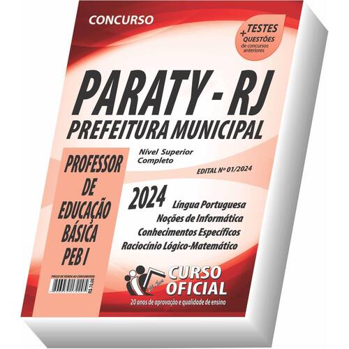 Edição impressa atualizada - elaborada por professores especializados em concursos públicos do curso oficial - são 23 anos de experiência e aprovação dedicados a você, . Cargo: professor de educação básica - peb i Tipo: impressa Páginas: 244 Escolaridade: nível superior Órgão: prefeitura municipal de paraty - rj - edital nº 01/2024 Conteúdo do material: Língua portuguesa Noções de informática Conhecimentos específicos Raciocínio lógico-matemático Você receberá ainda: Testes, provas e questões de concursos anteriores; Atualizações, se houver alguma mudança no edital; Prova do último concurso; Edital do concurso. Marca: Não Informado