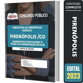 Apostila Pirenópolis GO - Técnico em Administração Escolar Apostila para Prefeitura de Pirenópolis - GO 2023 para o cargo de Administrativo Educacional III - Técnico em Administração Escolar Op-003jh-23-pirenopolis-go-tec-adm-imp Concurso Prefeitura de Pirenópolis - GO 2023 Você pode imaginar como a sua Vida vai Melhorar depois que você Conquistar a Aprovação neste Concurso Púbico Pois é, mais cedo ou mais tarde, você será Aprovado a e se tornará um Funcionário Público e, isso lhe trará a tão sonhada Estabilidade Profissional e Financeira que tantos almejam. Esta apostila lhe ajudará nesta caminhada, pois, ela é elaborada conforme o Edital. Características do Produto - Formato: Impressa Papel A4 - Marca: Apostilas Opção- Autor: Professores Especializados- Modelo: Livro Brochura - Medidas 21x29cm- Quantidade de Páginas: 572- Edição: Junho/2023 A Apostila Concurso Prefeitura de Pirenópolis - GO 2023 - Administrativo Educacional III - Técnico em Administração Escolar contempla as seguintes matérias: PortuguêsRaciocínio LógicoInformáticaConhecimentos GeraisLegislação Educação Conhecimentos Específicos 572 Páginas