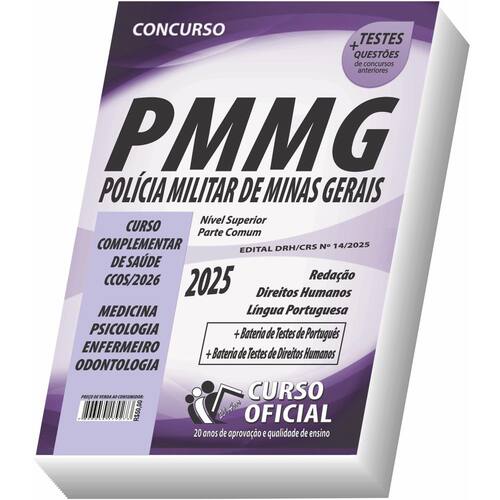 Edição impressa atualizada - elaborada por professores especializados em concursos públicos do curso oficial - são 25 anos de experiência e aprovação dedicados a você, . Cargos: medicina - psicologia - enfermagem - odontologia Tipo: impressa Páginas: 148 Escolaridade: nível superior Órgão: polícia militar de minas gerais - curso complementar de oficiais de saúde da pmmg - ccos/2026 - edital drh/crs nº 14/2025 Conteúdo do material: Redação Direitos humanos Língua portuguesa parte comum a todos os cargos Você receberá ainda: Testes, provas e questões de concursos anteriores; Atualizações, se houver alguma mudança no edital; Prova do último concurso; Edital do concurso. Marca: Não Informado