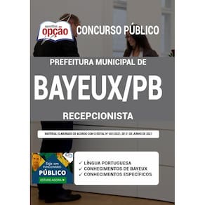 A Apostila Concurso Prefeitura de Bayeux - PB 2021 - Recepcionista contempla as seguintes matérias: Língua Portuguesa Conhecimentos de Bayeux Conhecimentos Específicos