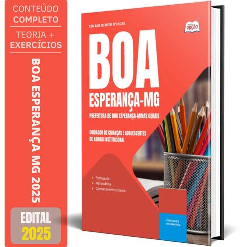 Apostila prefeitura de boa esperança mg 2025 - cuidador de crianças e adolescentes de abrigo institucional Apostila para prefeitura de boa esperança - mg 2025 para o cargo de cuidador de crianças e adolescentes de abrigo institucional