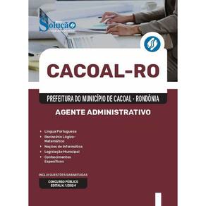 A Apostila Concurso Prefeitura de Cacoal - RO 2024 - Agente Administrativo contempla as seguintes matérias: