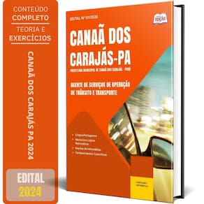 Apostila Prefeitura de Canaã dos Carajás PA 2024 - Agente de Serviços de Operação de Trânsito e Transporte Apostila para Prefeitura de Canaã dos Carajás - PA 2024 para o cargo de Agente de Serviços de Operação de Trânsito e Transporte