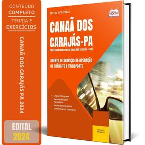 Apostila Prefeitura de Canaã dos Carajás PA 2024 - Agente de Serviços de Operação de Trânsito e Transporte Apostila para Prefeitura de Canaã dos Carajás - PA 2024 para o cargo de Agente de Serviços de Operação de Trânsito e Transporte